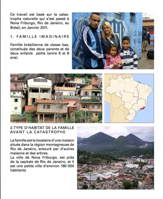 Cet exercice a pour objectif la réalisation d’une ou plusieurs planches imaginatives sur une famille en situation de victime récente d’une catastrophe naturelle. Il s’agit d’illustrer, à l’aide de 15 photos/images et de 3 planches A4 maximum, la situation d’une famille venant d’être frappée par une catastrophe naturelle.