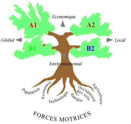 Ils représentent l’état futur du monde autour de deux axes : la gouvernance à l’échelle régionale et globale ; et le développement autour de la dimension environnementale et économique (Arnell et al, 2004